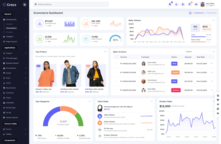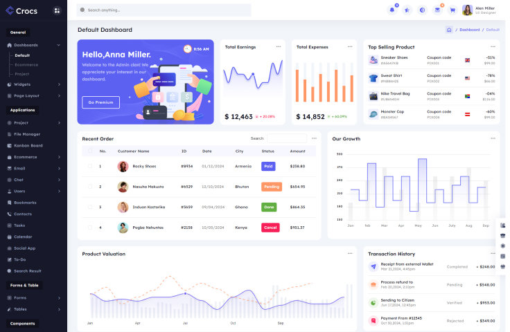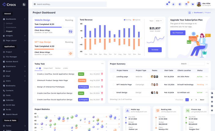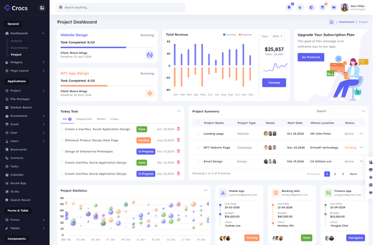 Crocs admin template provides 3 workable application and designs of other applications.