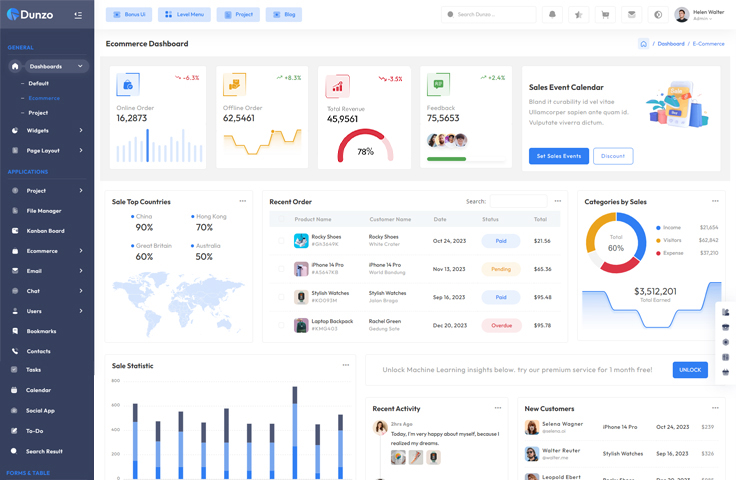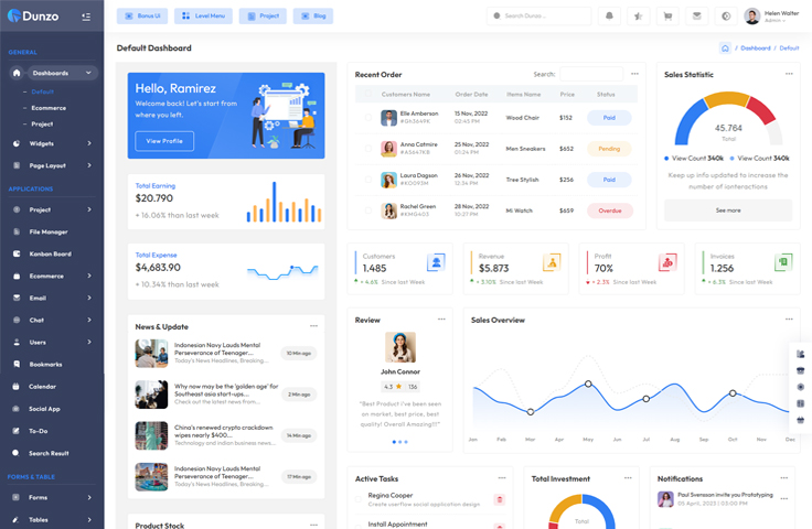 Every organization should use the Dunzo admin template. To build your own C-panel, it has all the functions and modules. using this template to market default, e-commerce, etc.