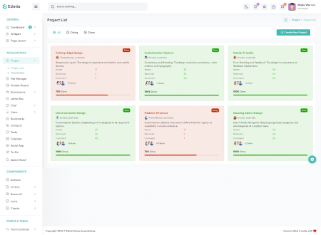 Edmin admin template provides 3 workable application and designs of other applications.